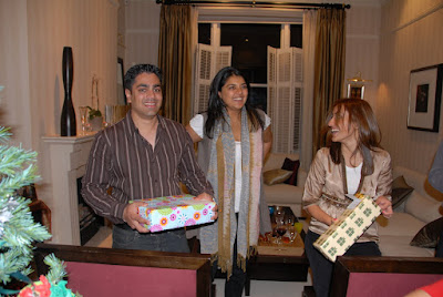 Present opening time for everyone - Sonaar, Shital, Sarju and Rohini came over from Kenya and the D'Sa team came round for some excellent gourmet food cooked Jamie Oliver style by Ush!